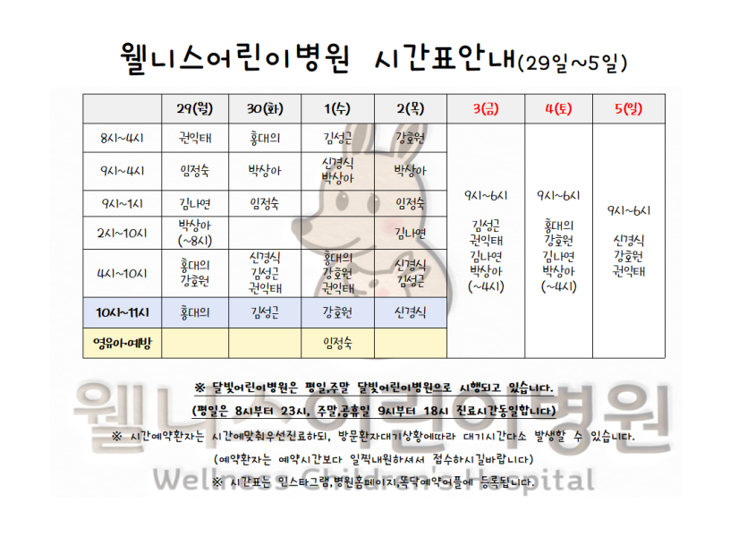 월 진료 시간표