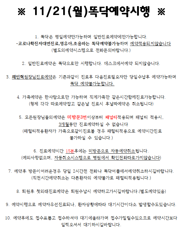 11월 21일 똑닥예약시행 안내! > 병원소식