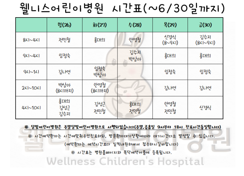 최고의 의료진의 정성스러운 진료로 최선을 다하는 웰니스어린이병원입니다.