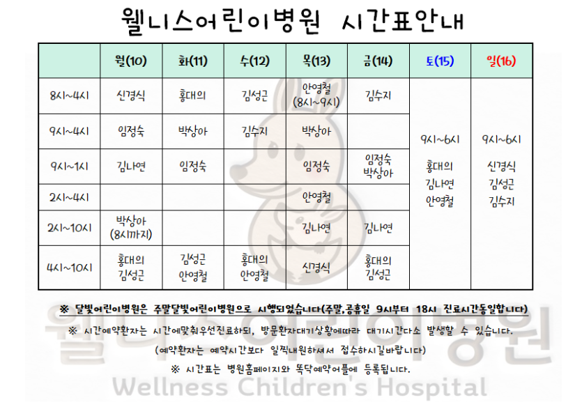 7월10일~16일시간표입니다. > 월 진료 시간표