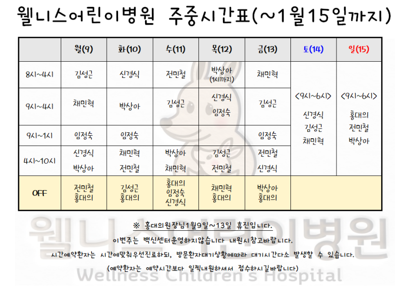 최고의 의료진의 정성스러운 진료로 최선을 다하는 웰니스어린이병원입니다.