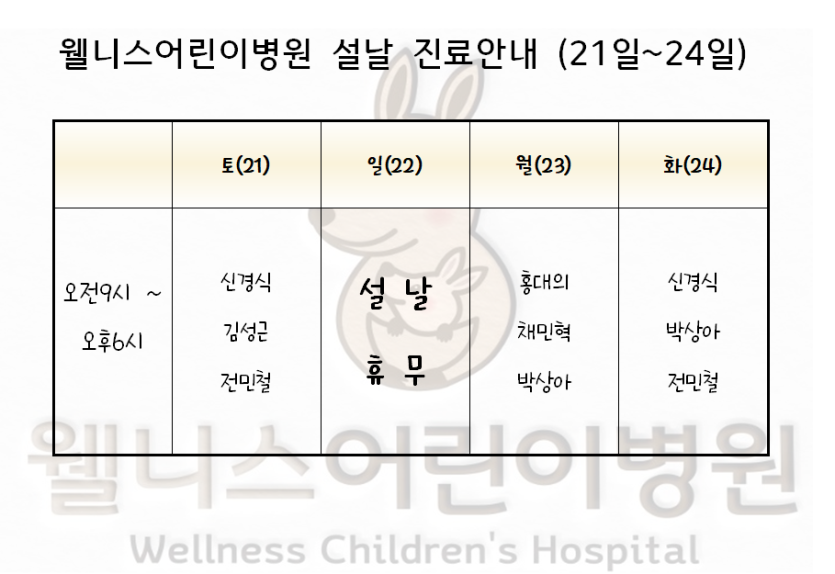 최고의 의료진의 정성스러운 진료로 최선을 다하는 웰니스어린이병원입니다.