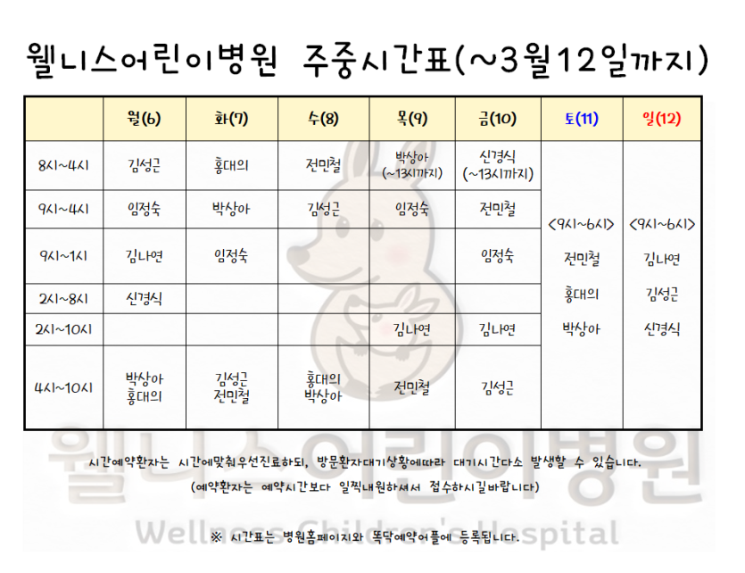 3월6일~3월12일 시간표 안내 > 월 진료 시간표