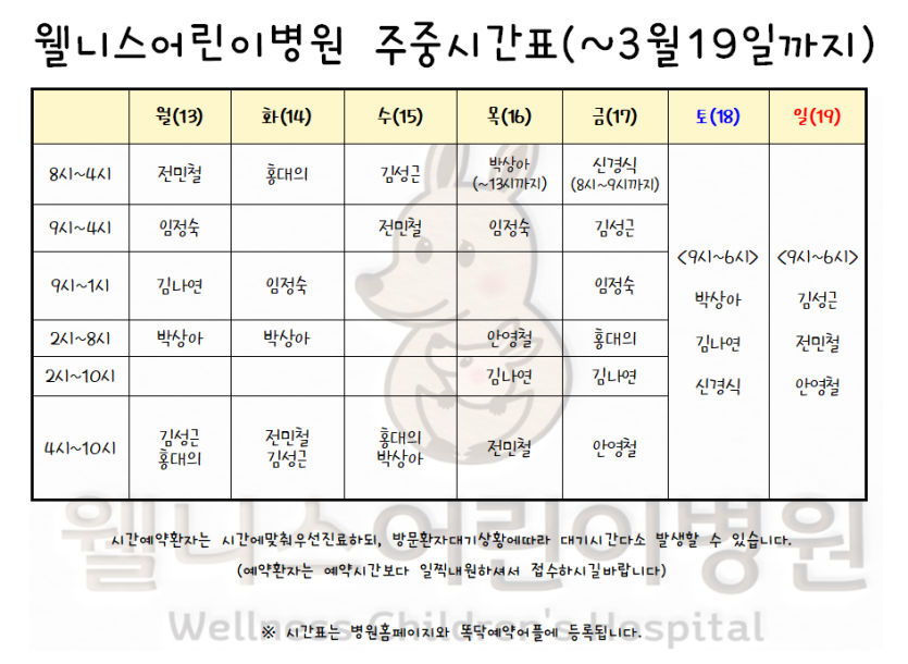 3월13일~19일 시간표 안내 > 월 진료 시간표