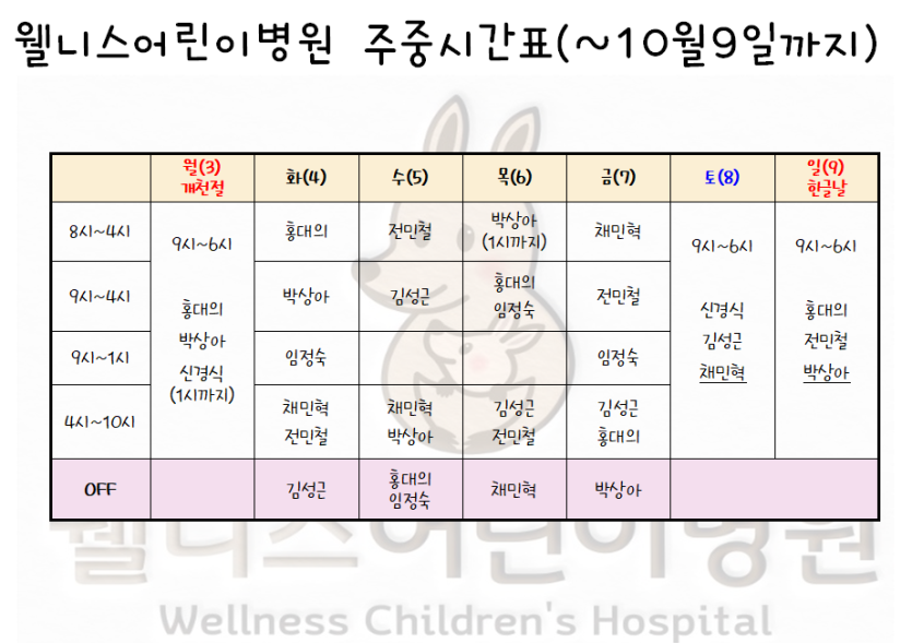 10월3일~10월9일시간표입니다.(10월 5일수정) > 월 진료 시간표