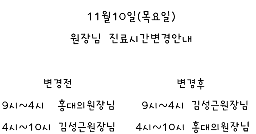 진료시간표 일부 변경되었습니다 내원시 확인바랍니다.
