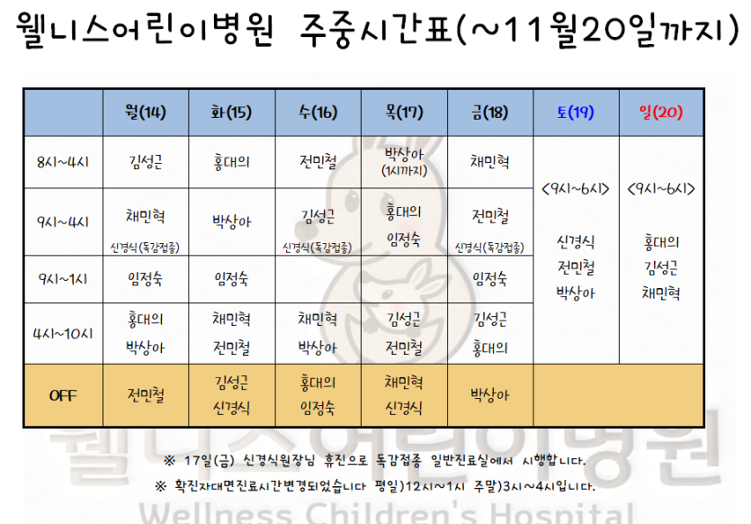 최고의 의료진의 정성스러운 진료로 최선을 다하는 웰니스어린이병원입니다.