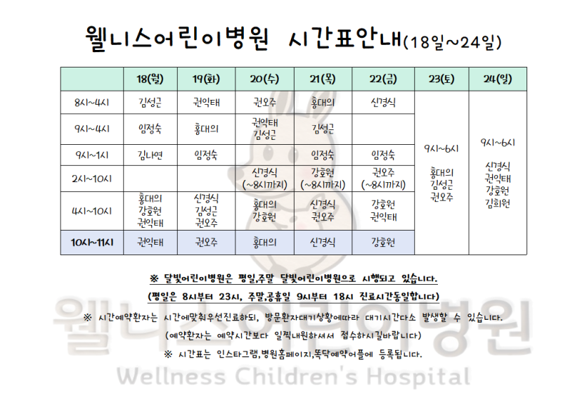 최고의 의료진의 정성스러운 진료로 최선을 다하는 웰니스어린이병원입니다.