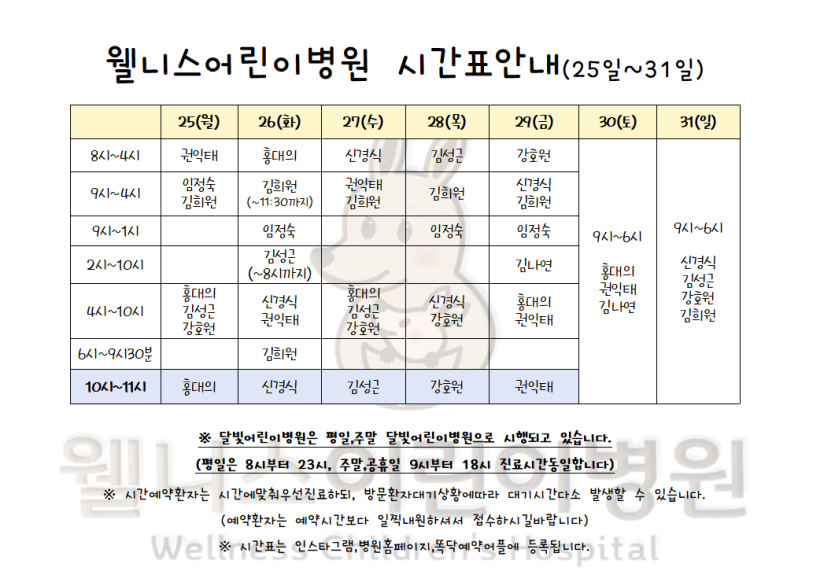 최고의 의료진의 정성스러운 진료로 최선을 다하는 웰니스어린이병원입니다.