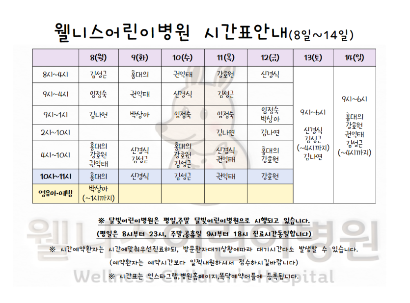 최고의 의료진의 정성스러운 진료로 최선을 다하는 웰니스어린이병원입니다.