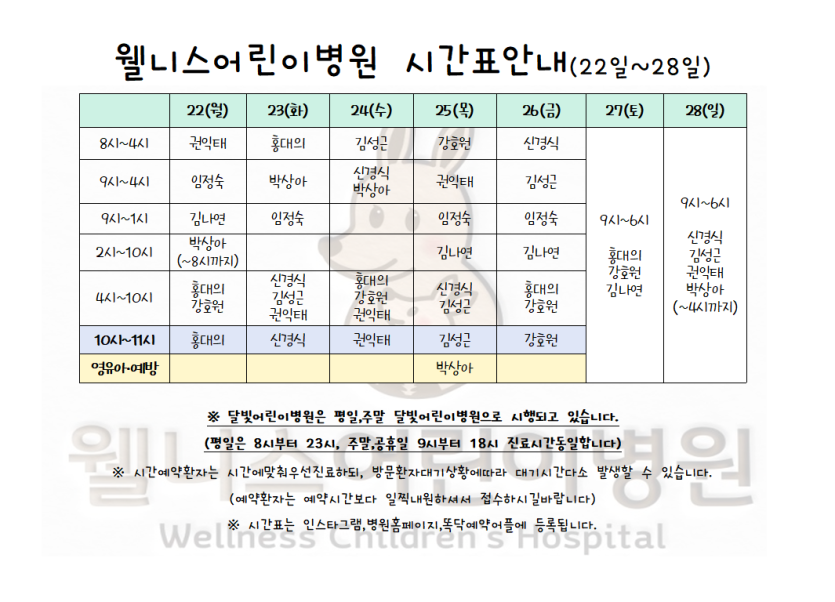 9월22일~28일 시간표입니다. > 월 진료 시간표