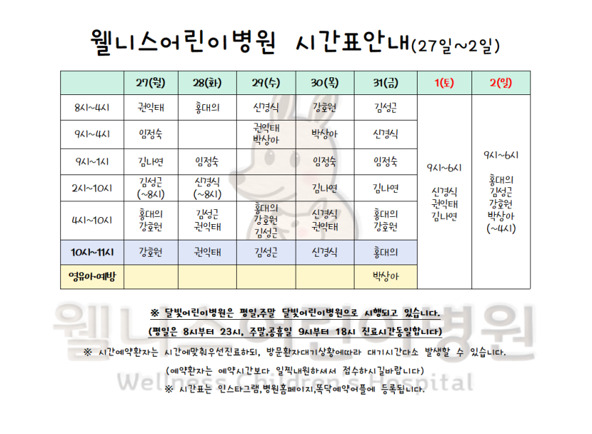 최고의 의료진의 정성스러운 진료로 최선을 다하는 웰니스어린이병원입니다.