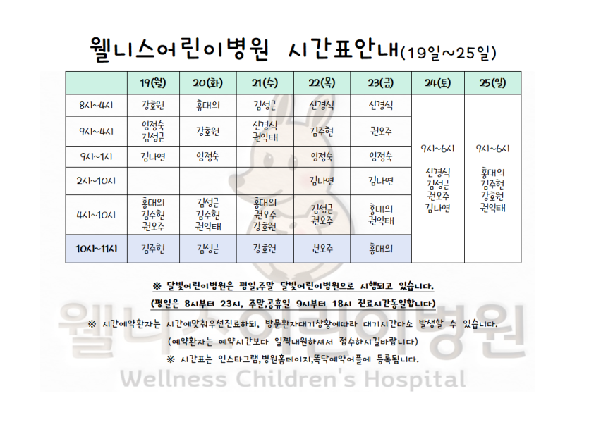 2025년 5월 19일~ 25일 시간표입니다. > 월 진료 시간표