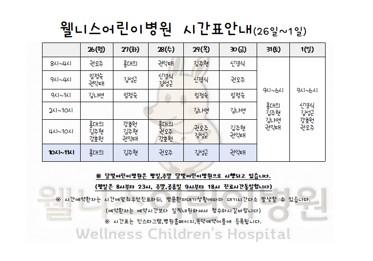 최고의 의료진의 정성스러운 진료로 최선을 다하는 웰니스어린이병원입니다.