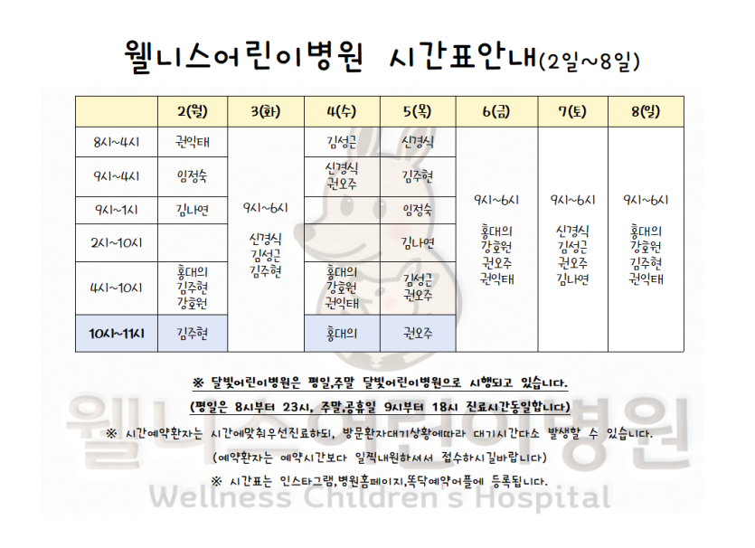 6월2일~8일 시간표입니다 > 월 진료 시간표