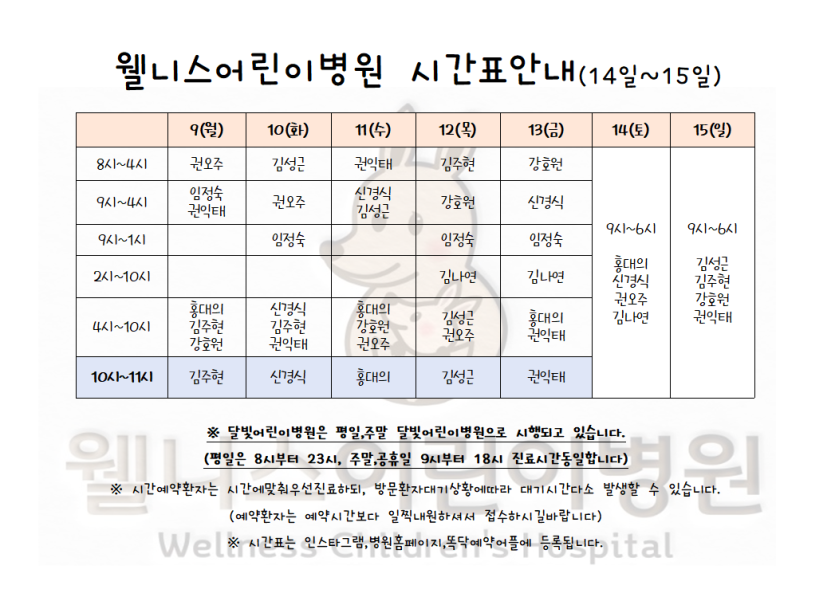 6월9일~15일 시간표입니다. > 월 진료 시간표