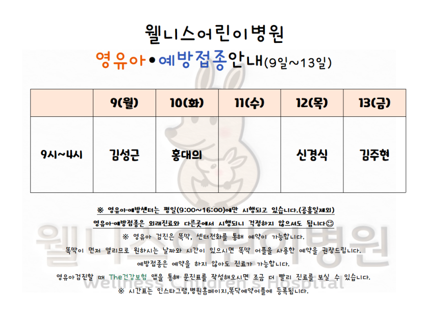 월 진료 시간표