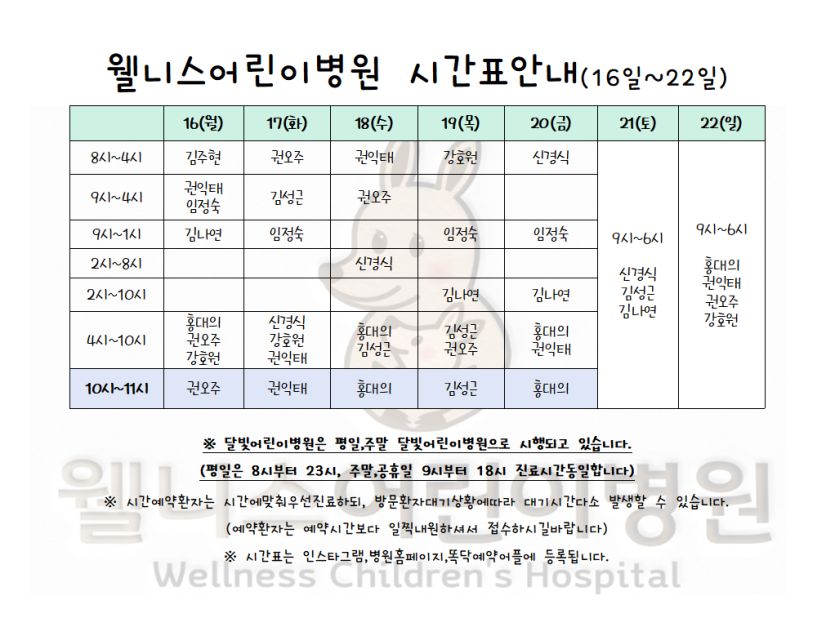 6월16일~22일 시간표입니다. > 월 진료 시간표