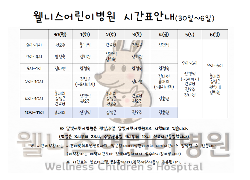 6월30일~7월6일 시간표입니다. > 월 진료 시간표