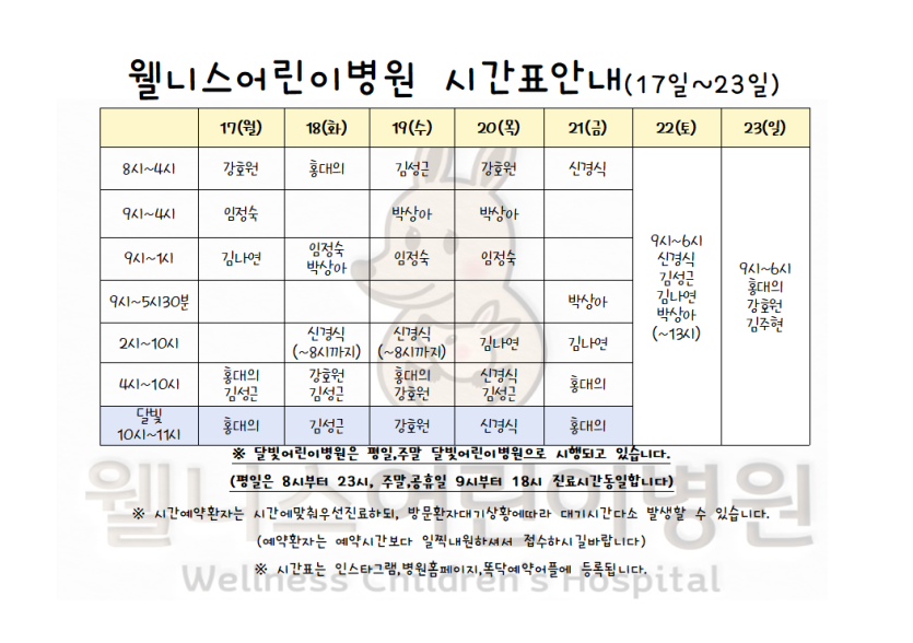 2월 17일 ~ 23일 시간표 입니다. > 월 진료 시간표