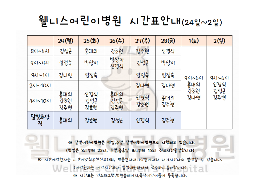 2월24일~3월2일 시간표 입니다. > 월 진료 시간표