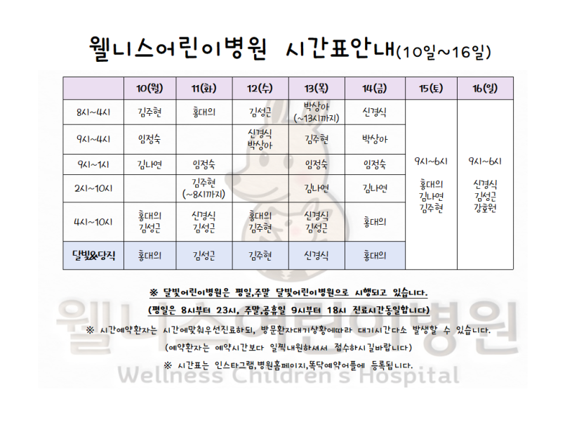 3월10일~16일 시간표 입니다. > 월 진료 시간표