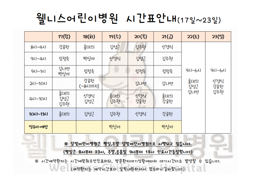 3월17일~23일 시간표입니다. > 월 진료 시간표