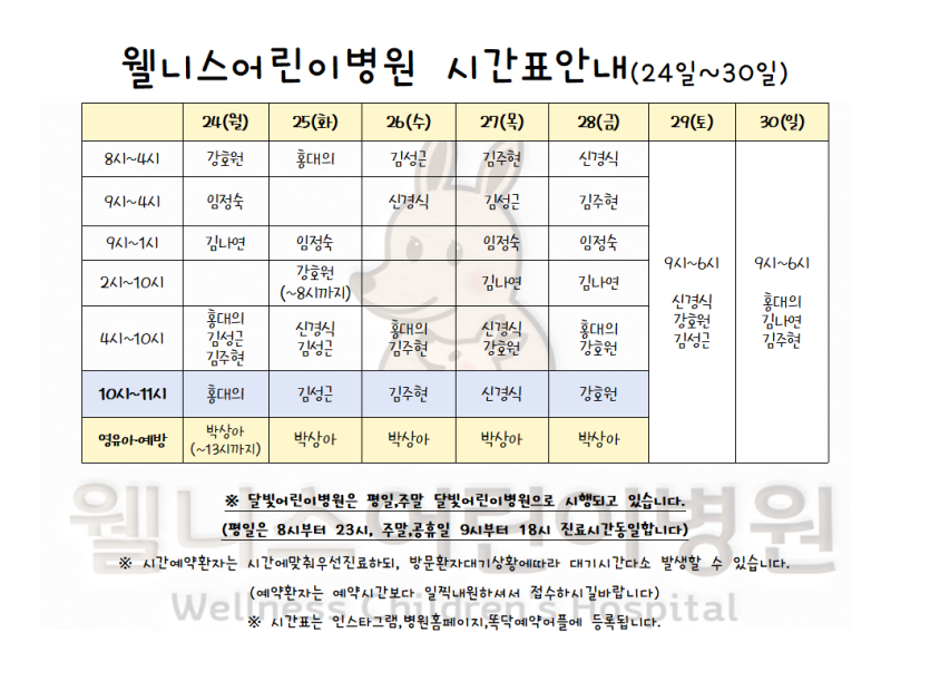 최고의 의료진의 정성스러운 진료로 최선을 다하는 웰니스어린이병원입니다.