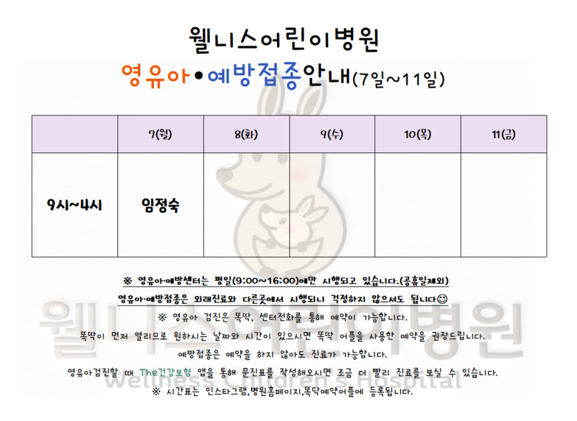 최고의 의료진의 정성스러운 진료로 최선을 다하는 웰니스어린이병원입니다.