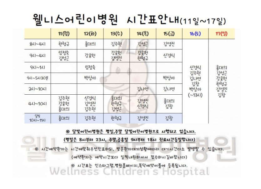 11월11일~17일 시간표입니다. > 월 진료 시간표