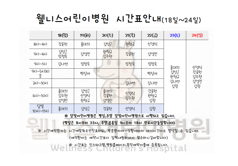 11월18일~24일 시간표입니다. > 월 진료 시간표