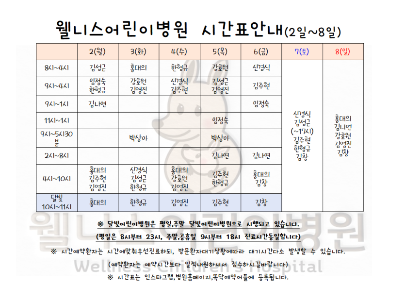 월 진료 시간표