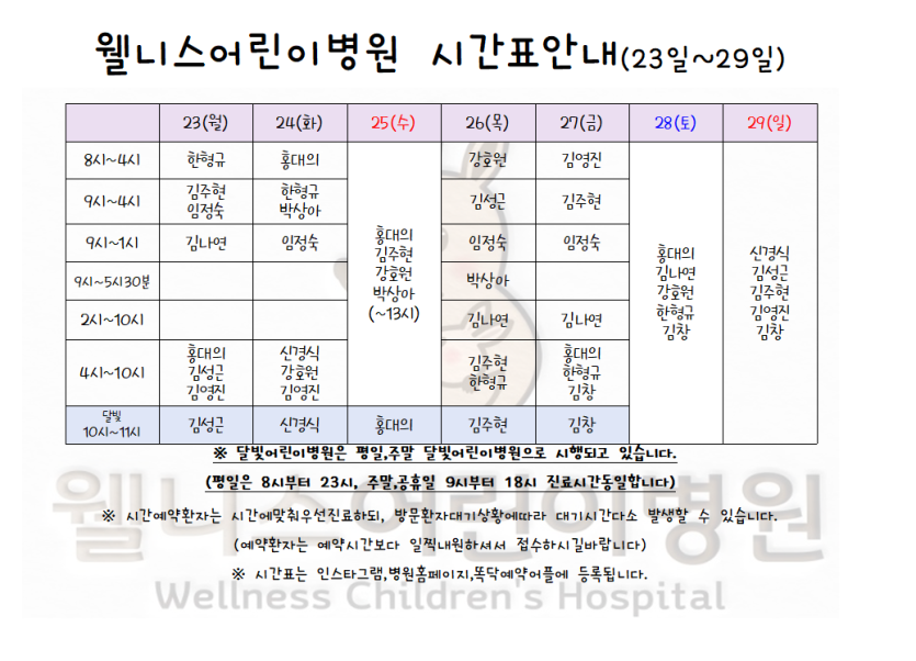 최고의 의료진의 정성스러운 진료로 최선을 다하는 웰니스어린이병원입니다.
