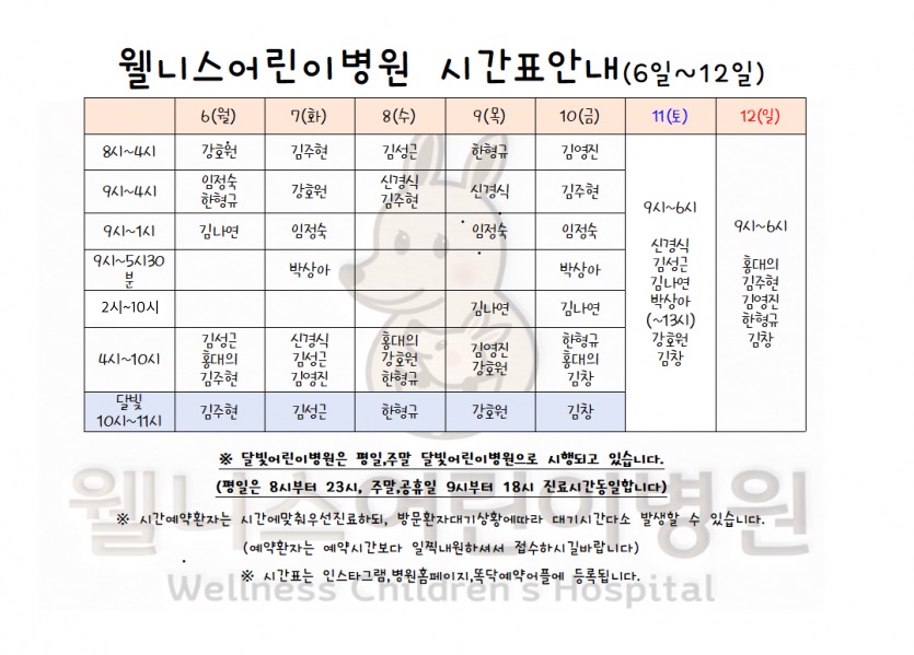 최고의 의료진의 정성스러운 진료로 최선을 다하는 웰니스어린이병원입니다.