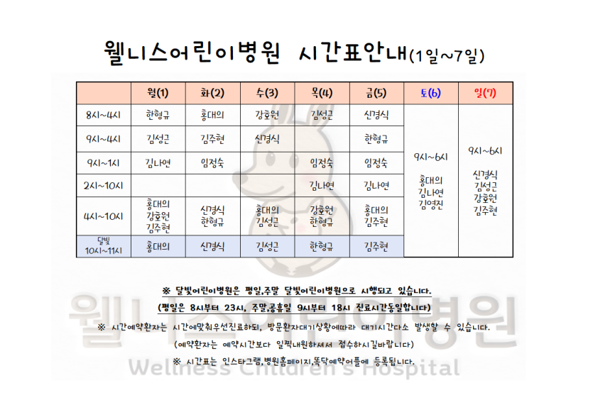 7월1일~7월7일 시간표입니다. > 월 진료 시간표