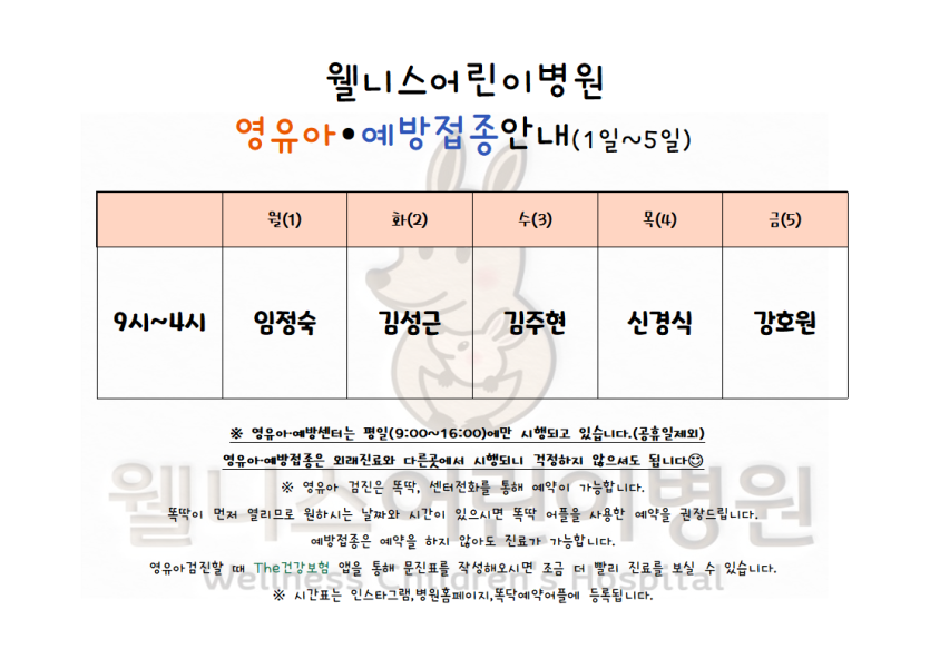 월 진료 시간표