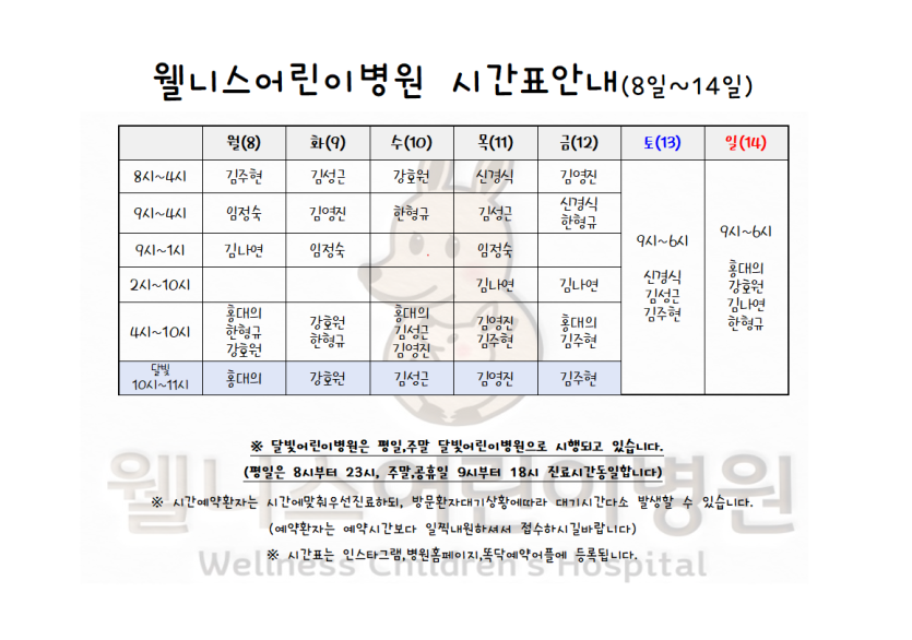 7월8일~7월14일시간표입니다. > 월 진료 시간표