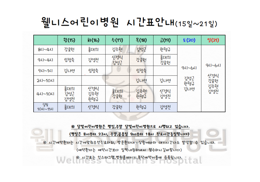 7월15일~7월21일 시간표 입니다 > 월 진료 시간표