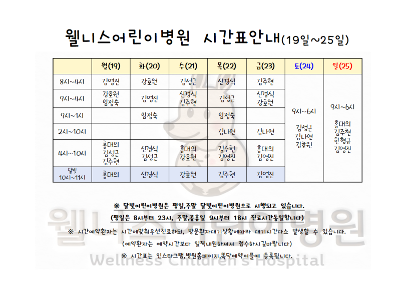 8월19일~25일 시간표입니다. > 월 진료 시간표