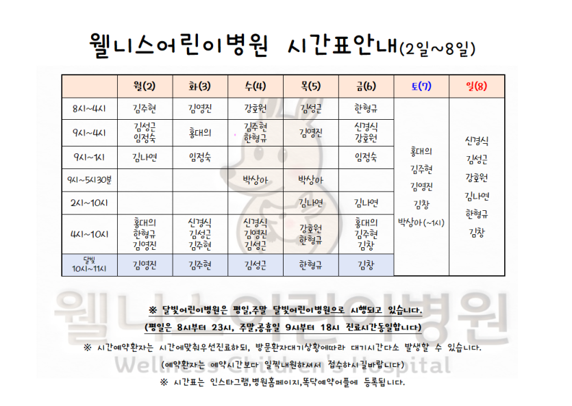 월 진료 시간표