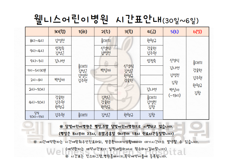 월 진료 시간표