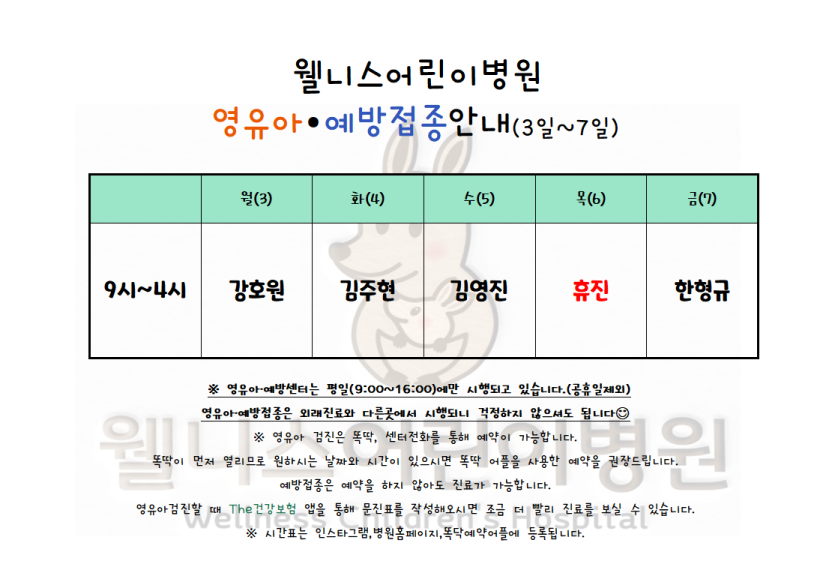 월 진료 시간표