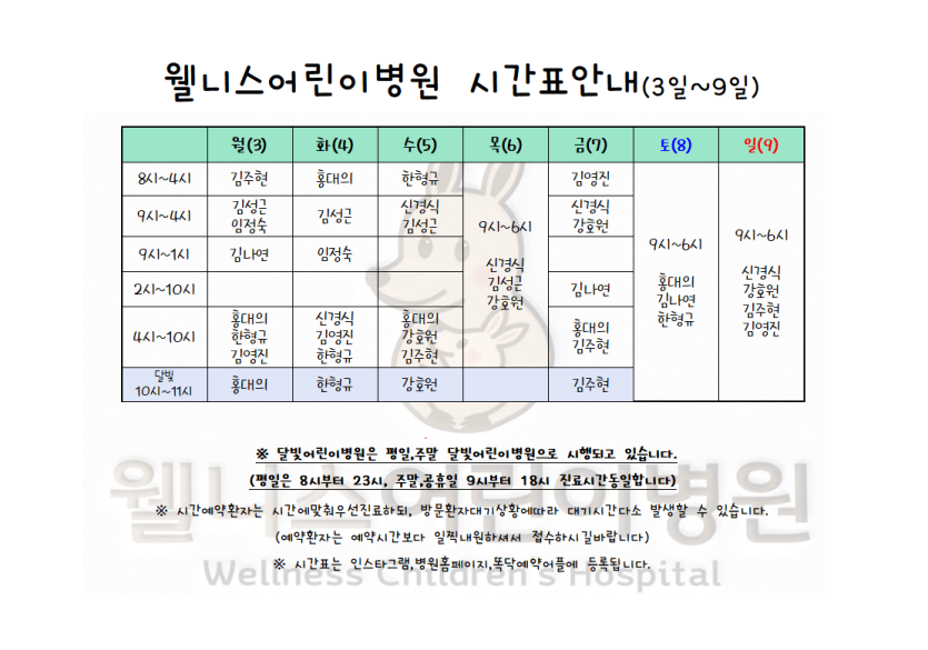 6월3일~6월9일 시간표 입니다. > 월 진료 시간표