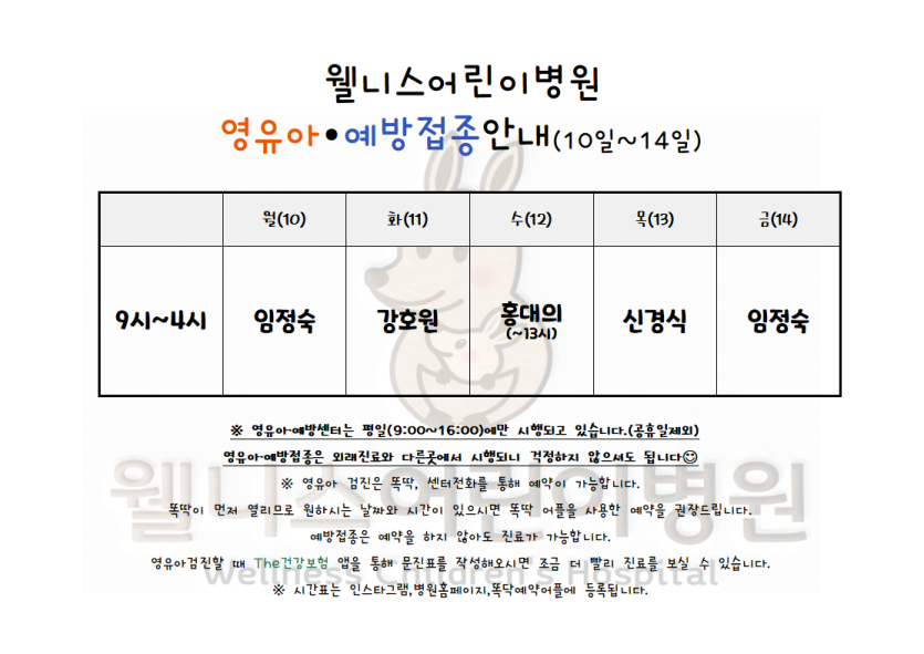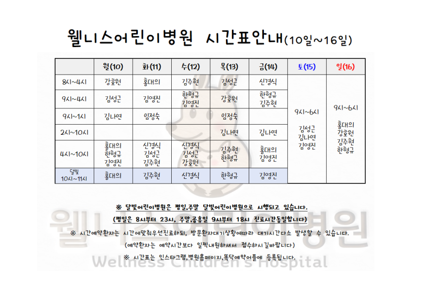 6월10일~6월16일 진료시간표입니다.
