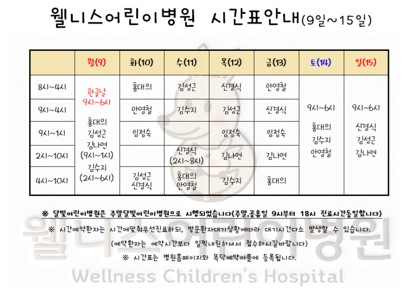 10월9일~15일시간표입니다. > 월 진료 시간표