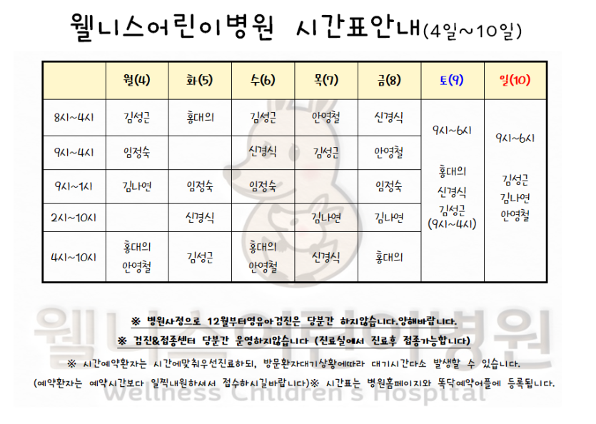 12월 4일~10일시간표입니다. > 월 진료 시간표
