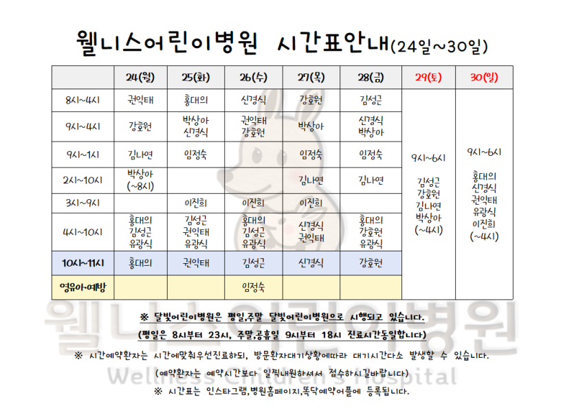 11월24일~30일 시간표입니다. > 월 진료 시간표