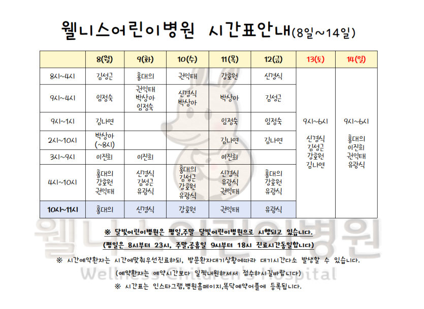 월 진료 시간표