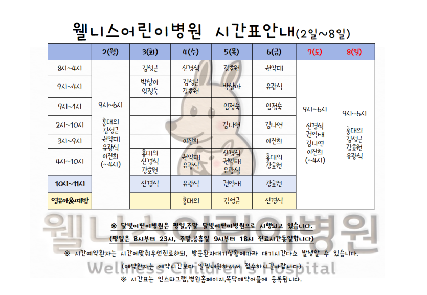 3월2일~8일 시간표입니다. > 월 진료 시간표